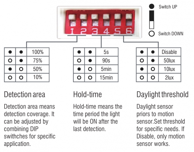 UL,FCC,TUV,RED,CE,ROHSDimmbarer Mikrowellen-Bewegungssensor