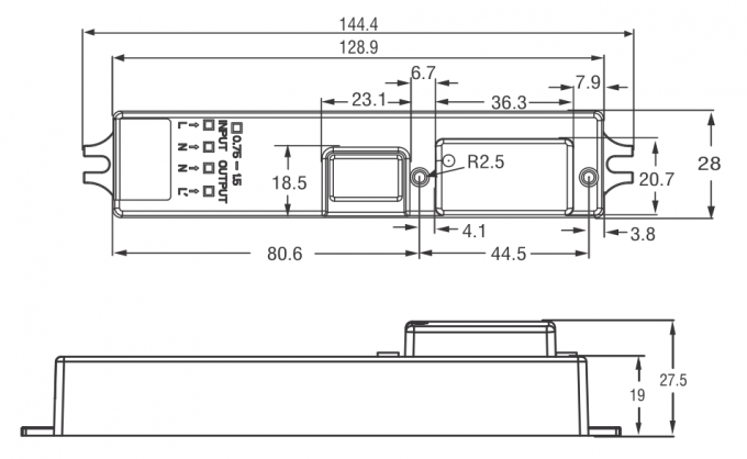 Schnittstellen | 4-polige steckbare Klemmenklemme (L,N,N,L') für 0,75-1,5mm2 Kabel |