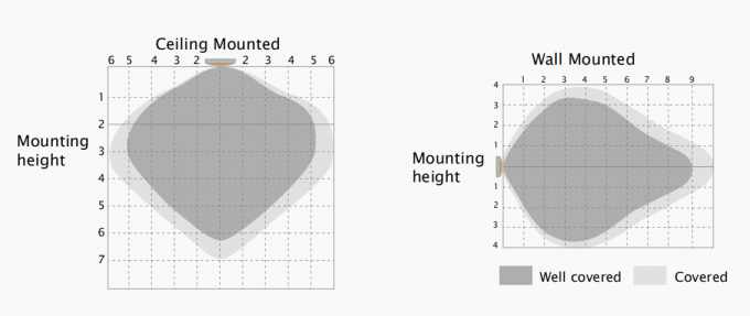3. Der Erfassungsbereich wird durch die Bewegungsgeschwindigkeit, die Montagehöhe und das Bewegungsvolumen beeinflusst.