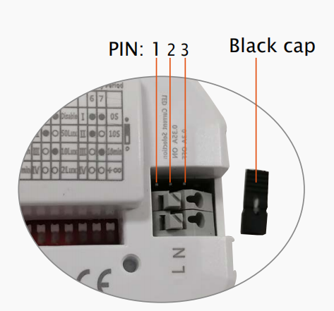 Stellen Sie den Strom auf 350 mA ein, indem Sie die schwarze Kappe auf PIN 1 und 2 stecken, und auf 300 mA, indem Sie PIN 2 und 3 stecken.